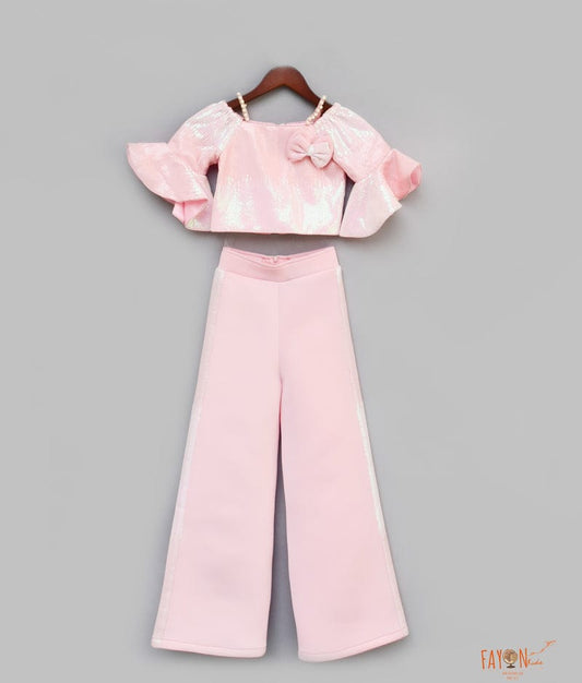 Baby Pink Sequence Top and Dhoti with Cape for ...