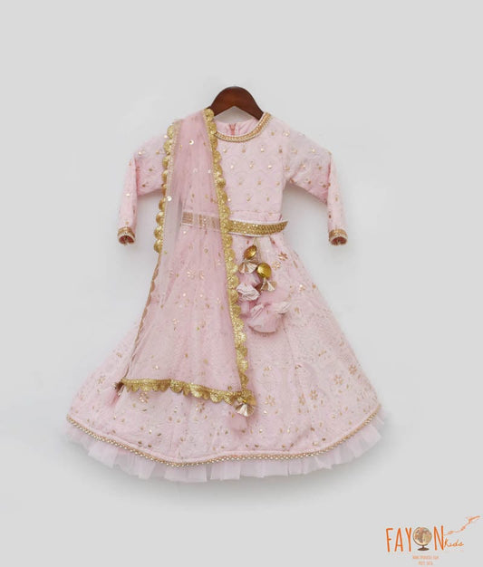 Baby Pink Lucknowi Anarkali With Boti Net Dupat...