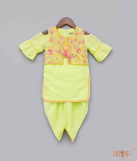 Neon Green Cotton Dhoti Set with Embroidery Jac...