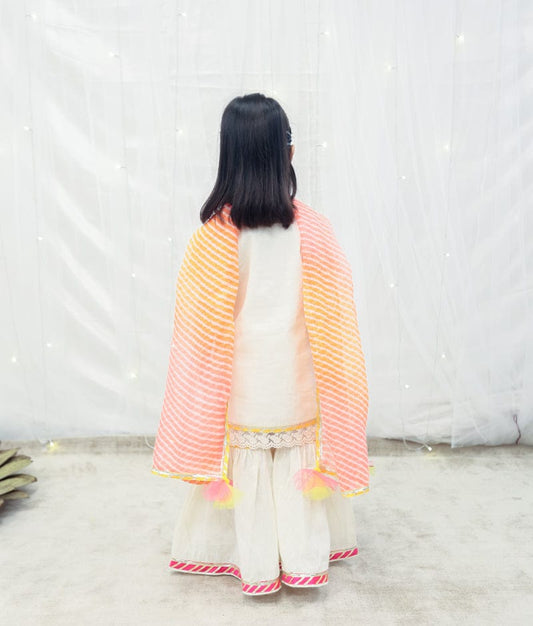 Bandhani, a tie-dye technique native to Rajasthan, is known for its vibrant colors and intricate patterns. Our Bandhani lehenga sets are crafted with rich fabrics and adorned with traditional embellishments such as gota patti, zari, and mirror work. These outfits are perfect for festive occasions, giving your child a cheerful and colorful appearance.
