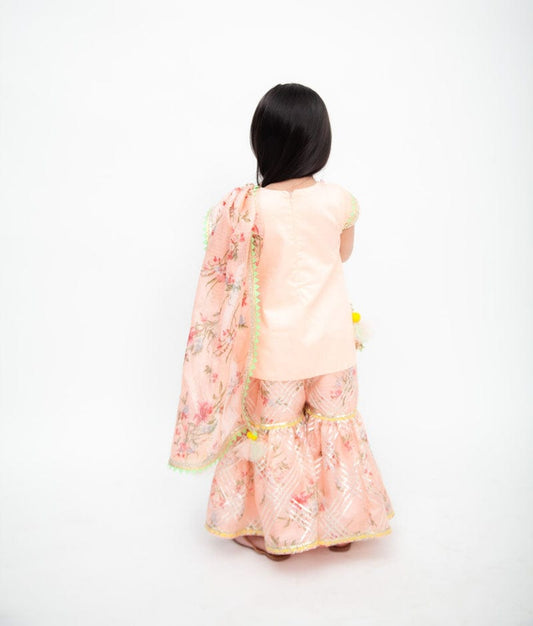 Peach Kurti with Kotta Print Sharara and Printe...