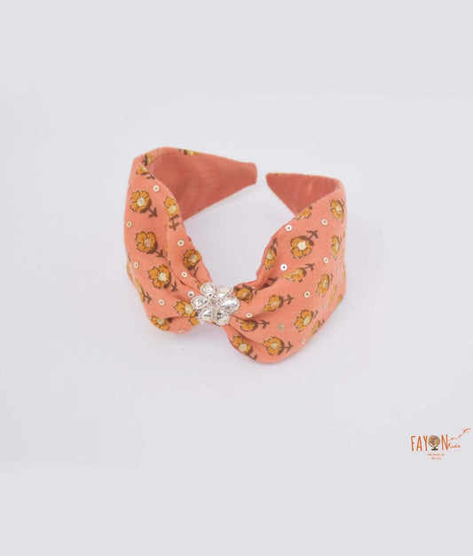 Peach Printed Knotted Hair band