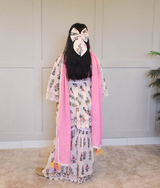Peach Printed Kurti with Sharara and Dupatta