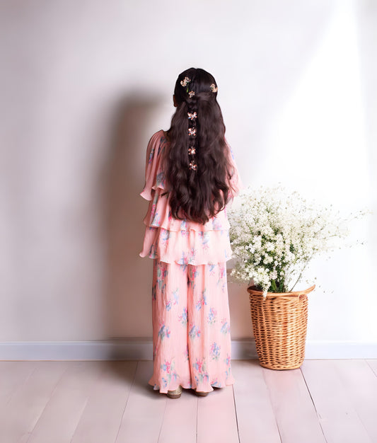 Peach Printed Layered kurti with Plazzo for Girls