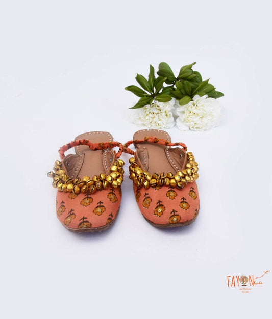 Peach Printed Jutti for Girls