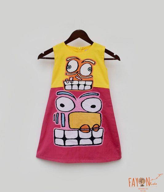 Pink and Yellow Linen Dress for Girls