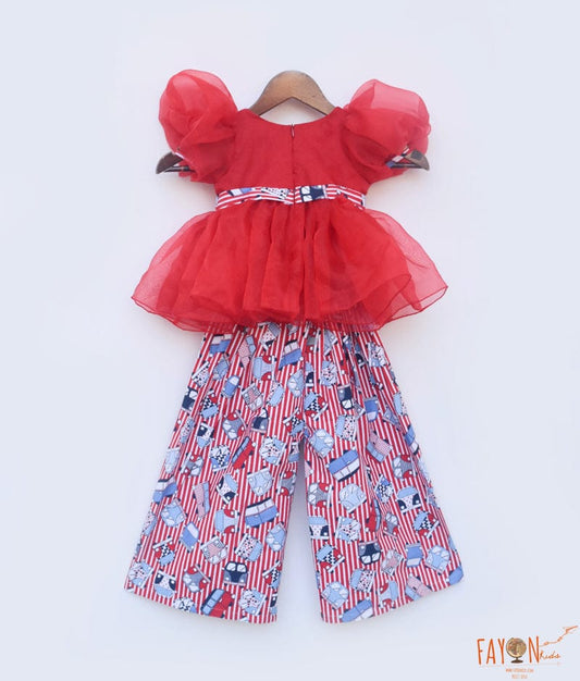 Red Organza Top and Printed Plazo Pant for GirlsRegular price Rs.6,055Sale price Rs.6,055 Regular priceUnit price per