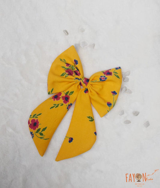 Yellow Printed Bow Clip for Girls