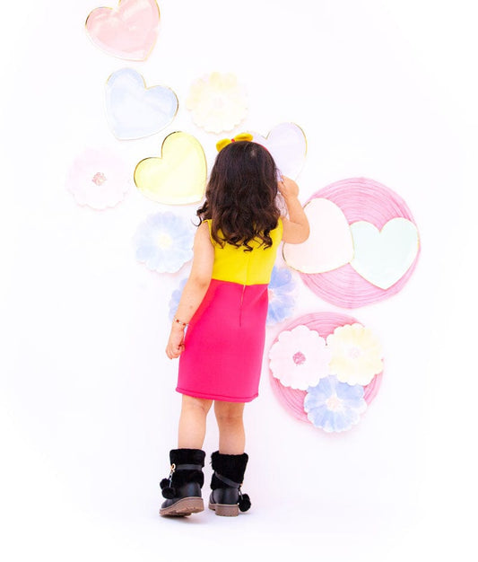 Yellow Pink Lycra Dress for Girls