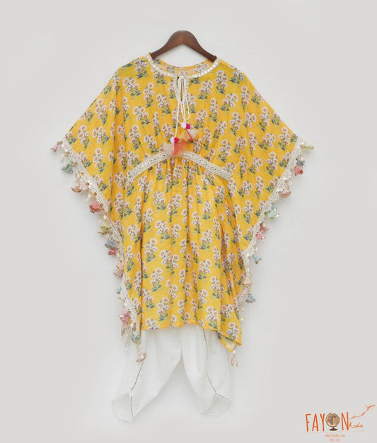 Yellow Print Khaftan and Dhoti for Girls