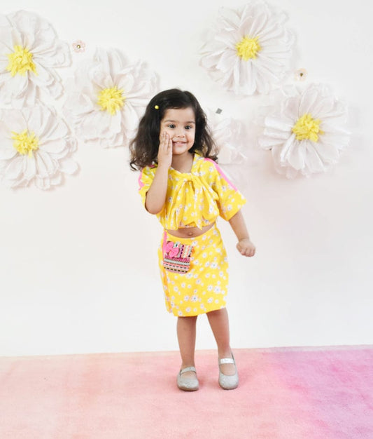 Yellow Printed Kurti with Dhoti for Girls