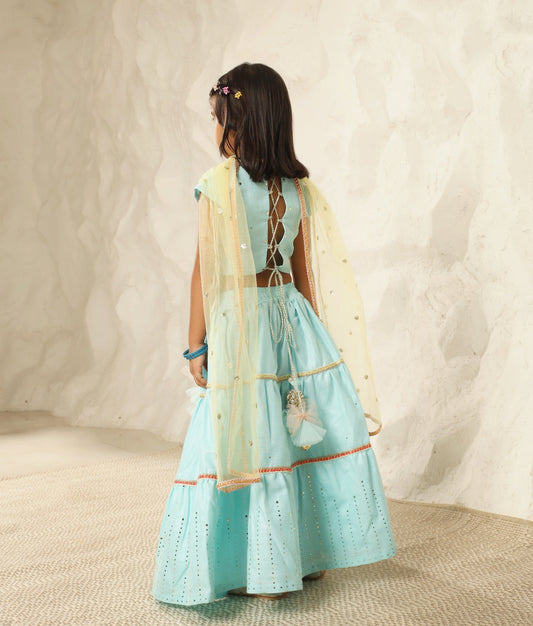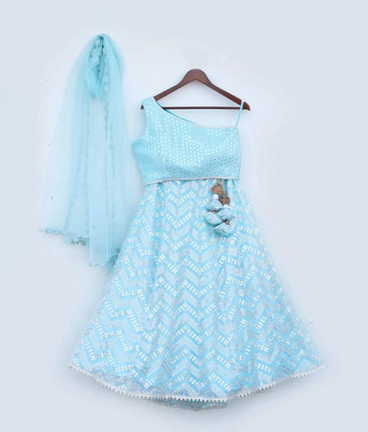 Blue Embroidered Lehenga Choli Set for Girls