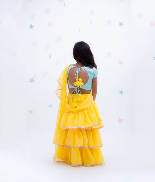 Blue Embroidery Yellow Georgette Saree for Girls