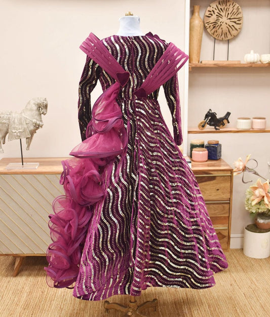 3D Wine Embroidered Gown for Girls