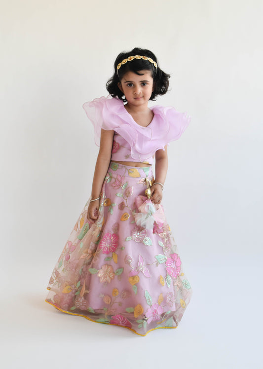 Lilac Embroidery Lehenga Organza Frill Top for ...
