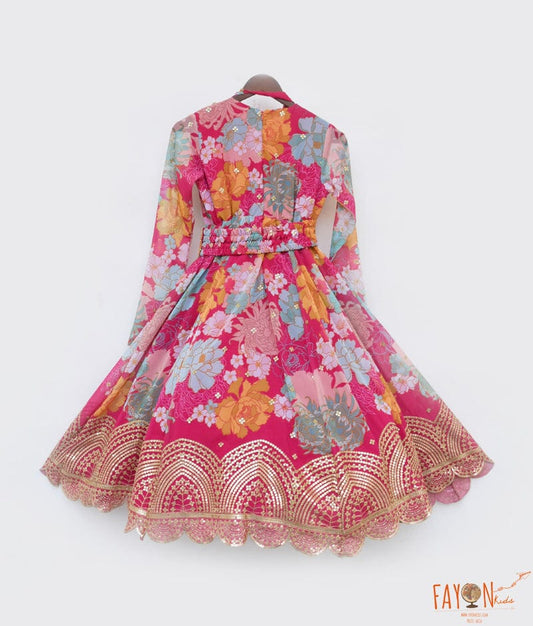 Pink Printed Anarkali Georgette Dupatta for Girls