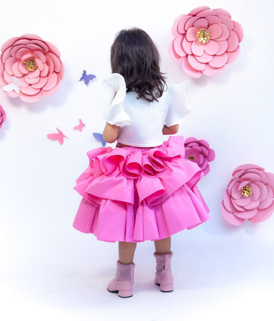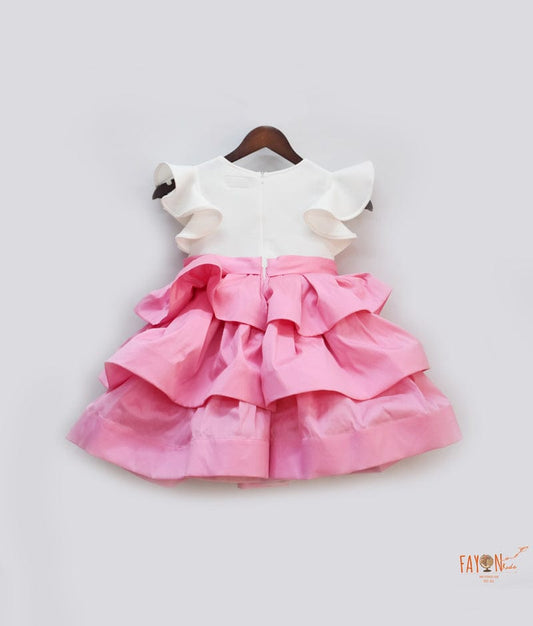 Off white Neoprene Pink Silk Frock for Girls