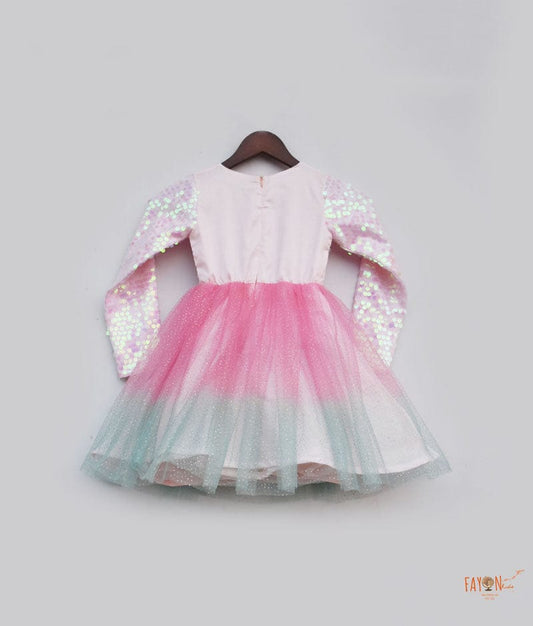 Pastel Pink Sequins Glitter Net Frock for Girls
