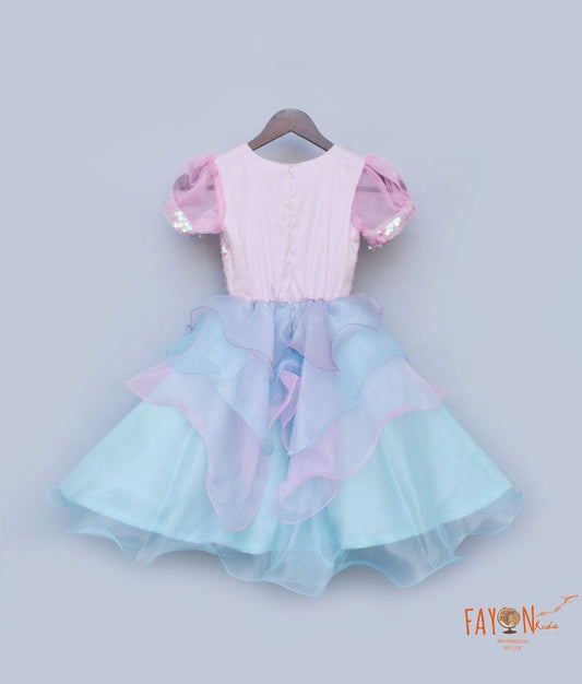 Blue Sequins Organza Frock for Girls