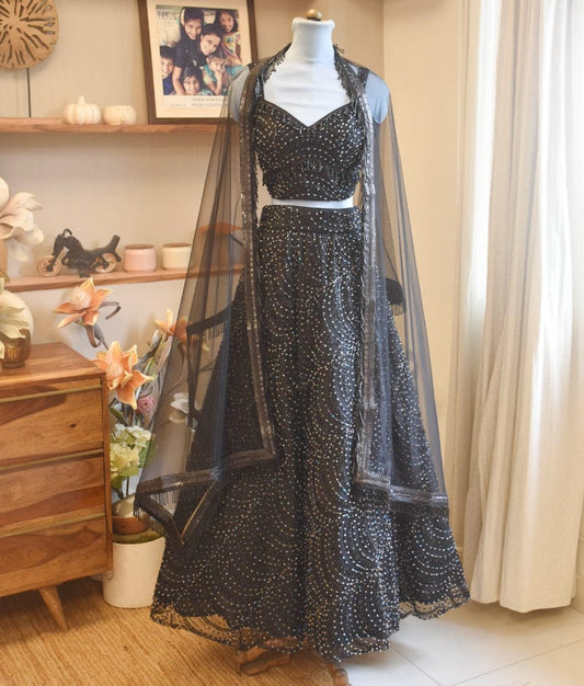 Noir Chic: Black Embroidered Lehenga Choli Set ...