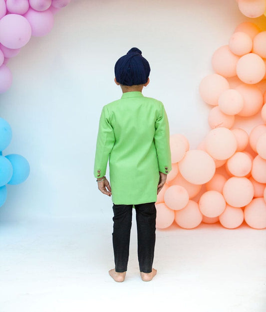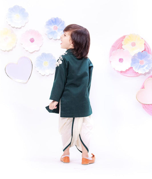 Bottle Green Embroidery Achkan with Dhoti for Boys