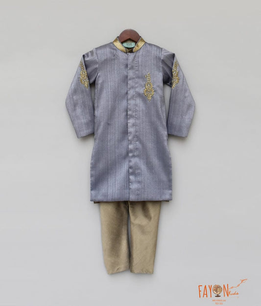 Maroon Embroidery Achkan with Beige Chudidar fo...