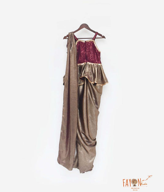 Wine Burgundy Sequins Golden Shimmer Saree for ...