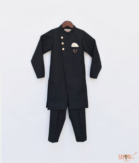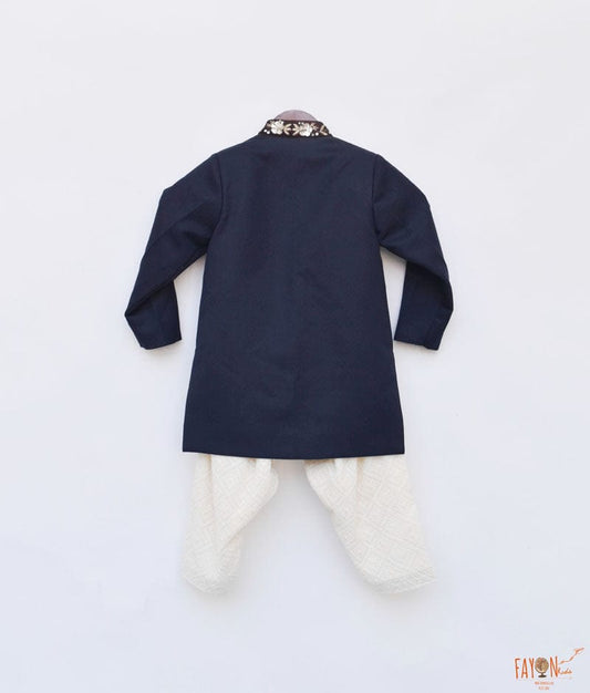 Dark Blue Kurta with Lucknowi Salwar for Boys