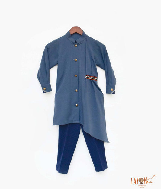 Grey Georgette Asymmetrical Kurta with Blue Pan...