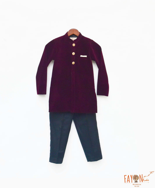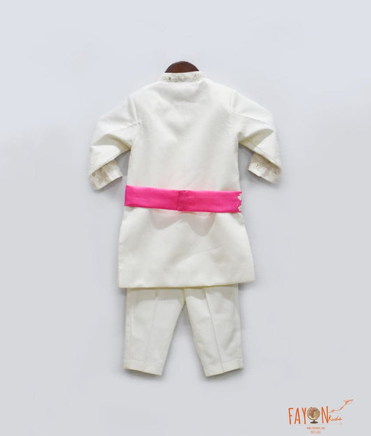 Off white Achkan with Pant Hot Pink Belt for Boys