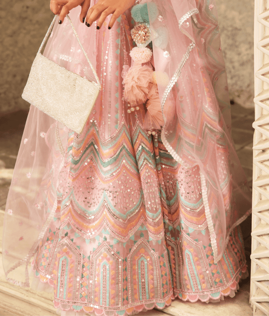 Pink Net Printed Lehenga with Choli Drape Dupat...
