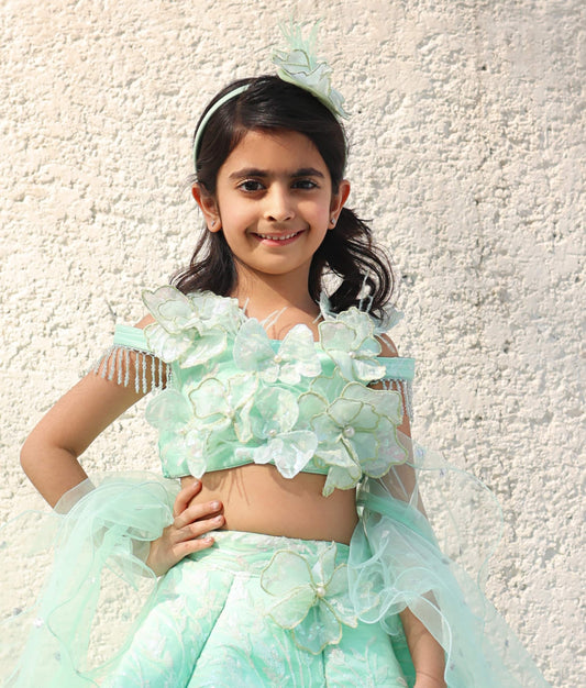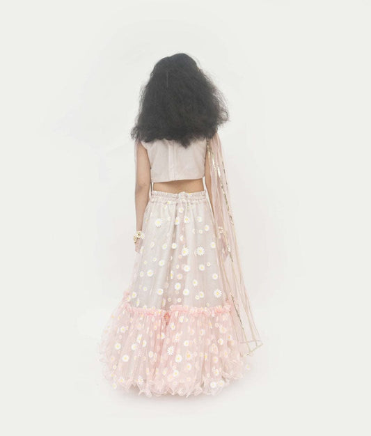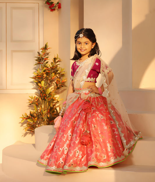 Pink Sequence Embroidery Crop Top Skirt for Girls