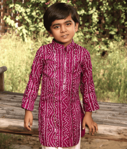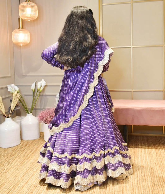 Purple Bandhej Lehenga Choli and Dupatta for Girls