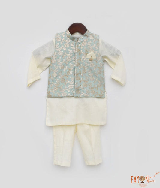 Yellow Organza Jacket with Kurta and Pant for Boys