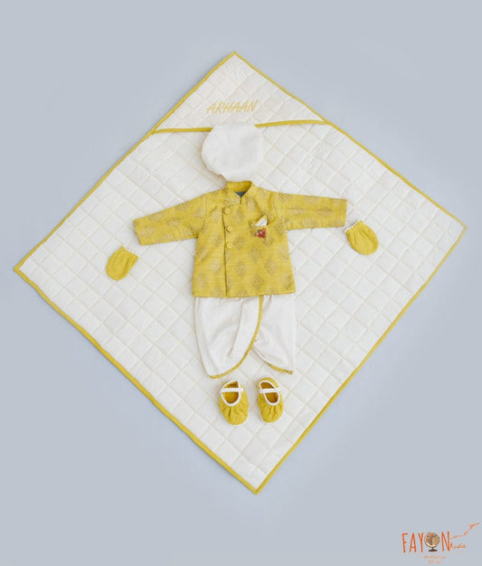 Yellow Silk Ajkan and Dhoti Jamna Set for Boys