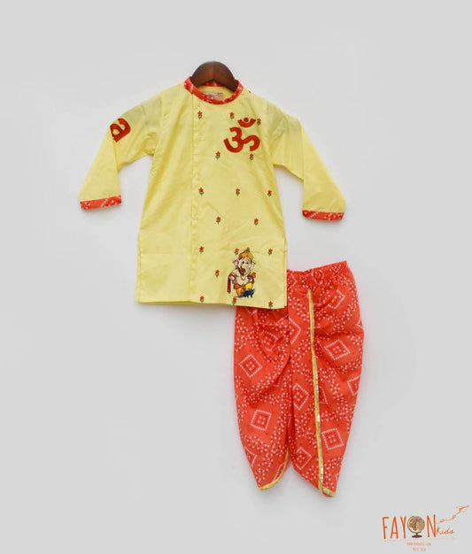 Yellow Kurta and Red Bandhej Dhoti for Boys