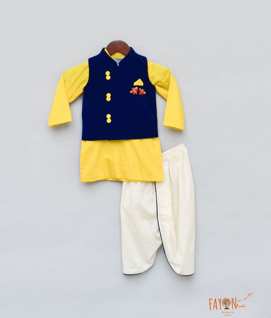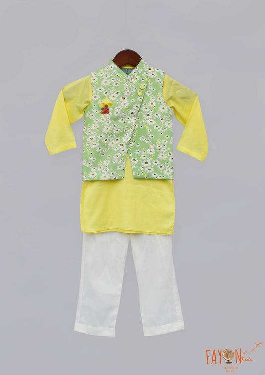 Yellow Embroidery Jacket with Kurta Pant for Boys
