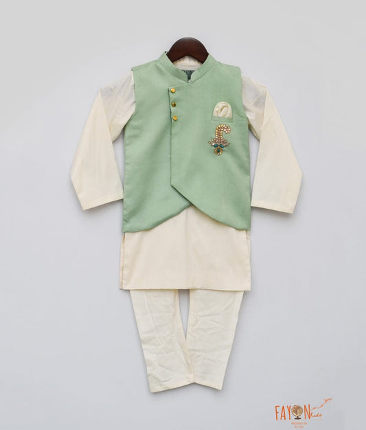 Pista Green Embroidery Nehru Jacket with Kurta ...