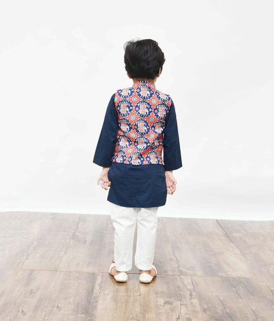 Patola Print Nehru Jacket with Navy Blue Kurta ...