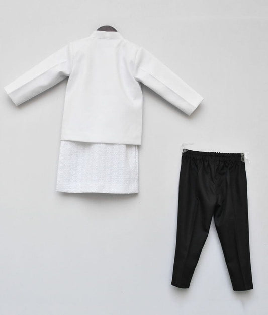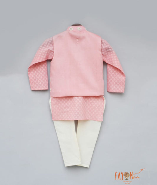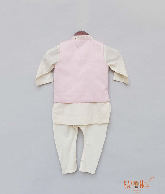 Pink Embroidery Nehru Jacket with Off white Kur...