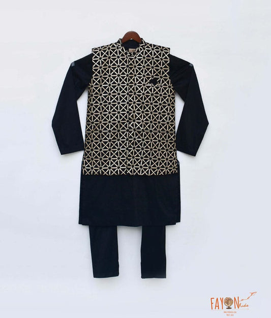 Black Printed Shirt with Golden Pant for Boys
