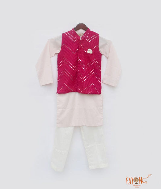 Peach Jacket with Kurta Pant for Boys