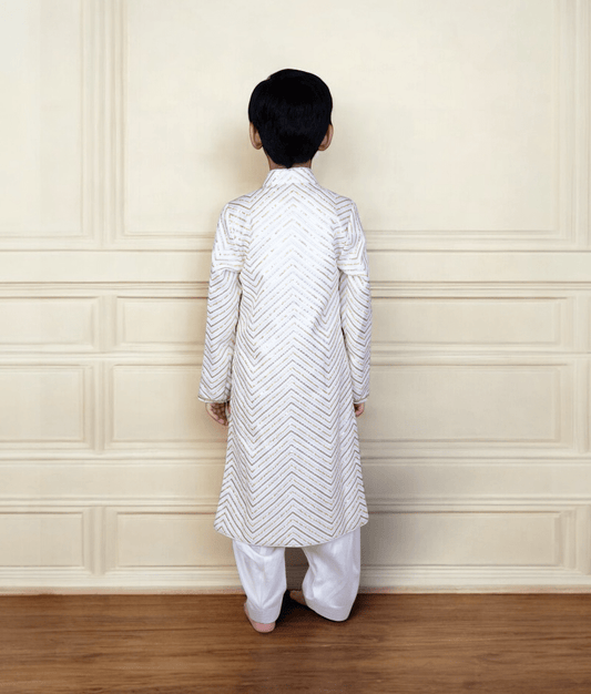 Off white Embroidery Achkan with Salwar for Boys