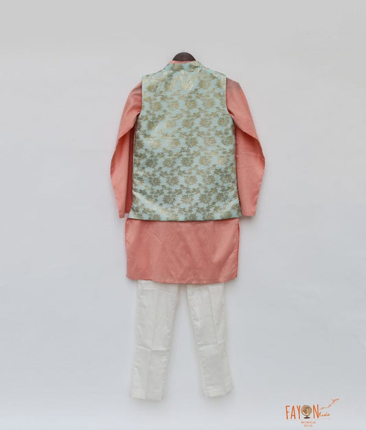 Baby Pink Embroidery Jacket with Kurta and Pant