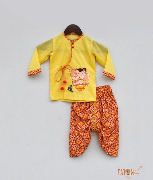Yellow Kurta with Printed Dhoti for Boys