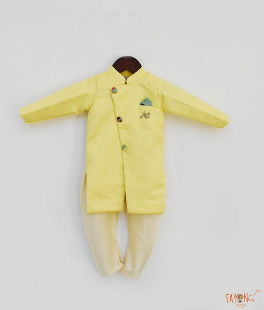 Yellow Silk Achkan with Chudidar for Boys