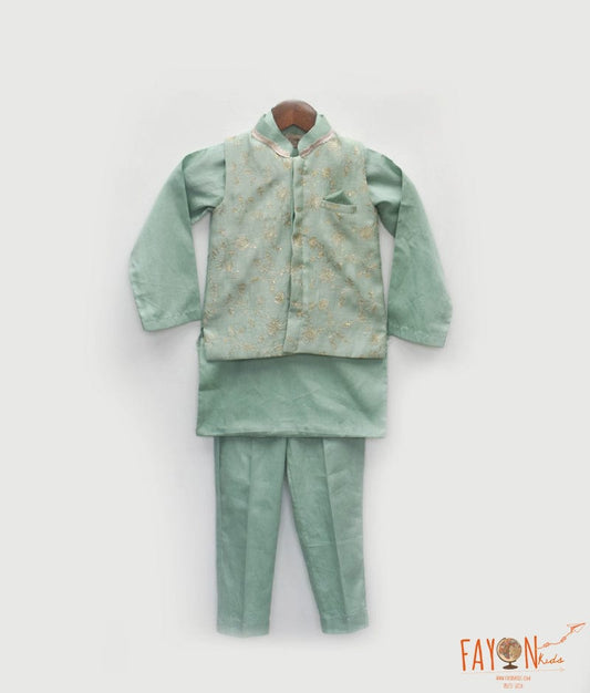 Green Embroidered Nehru Jacket with Kurta and Pant