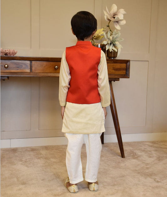 Red Golden Embroidery Jacket with Golden Kurta ...