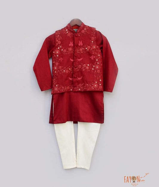 Maroon Embroidery Jacket with Maroon Kurta Chud...