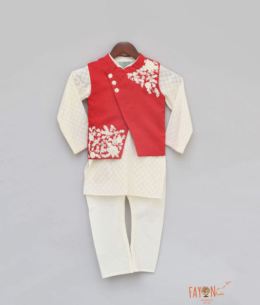 Red Embroidery Nehru Jacket with Kurta Chudidar...